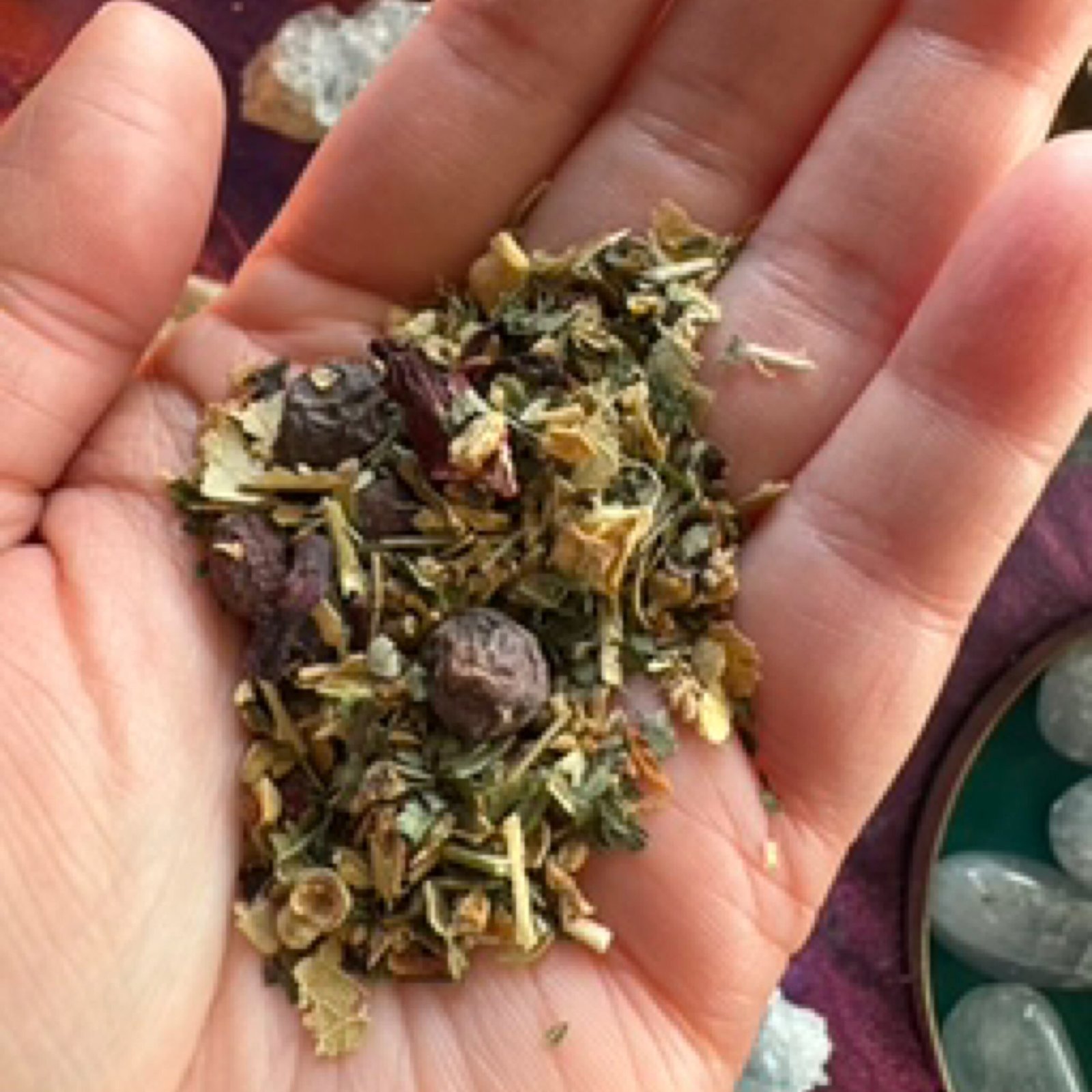Contains: linden leaf and flower, hibiscus flower, lemon balm, yarrow, hawthorn berry, & ginger root.