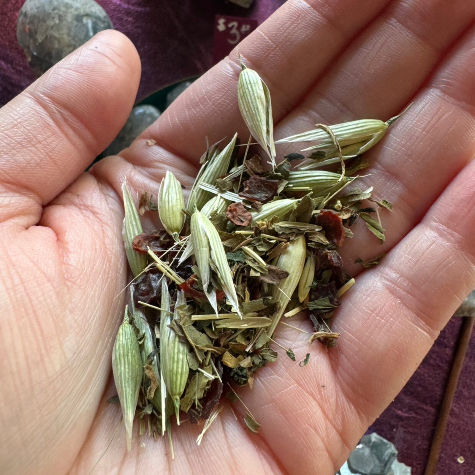 Ingredients: peppermint, alfalfa, oatstraw & tops, nettle, rose hips.