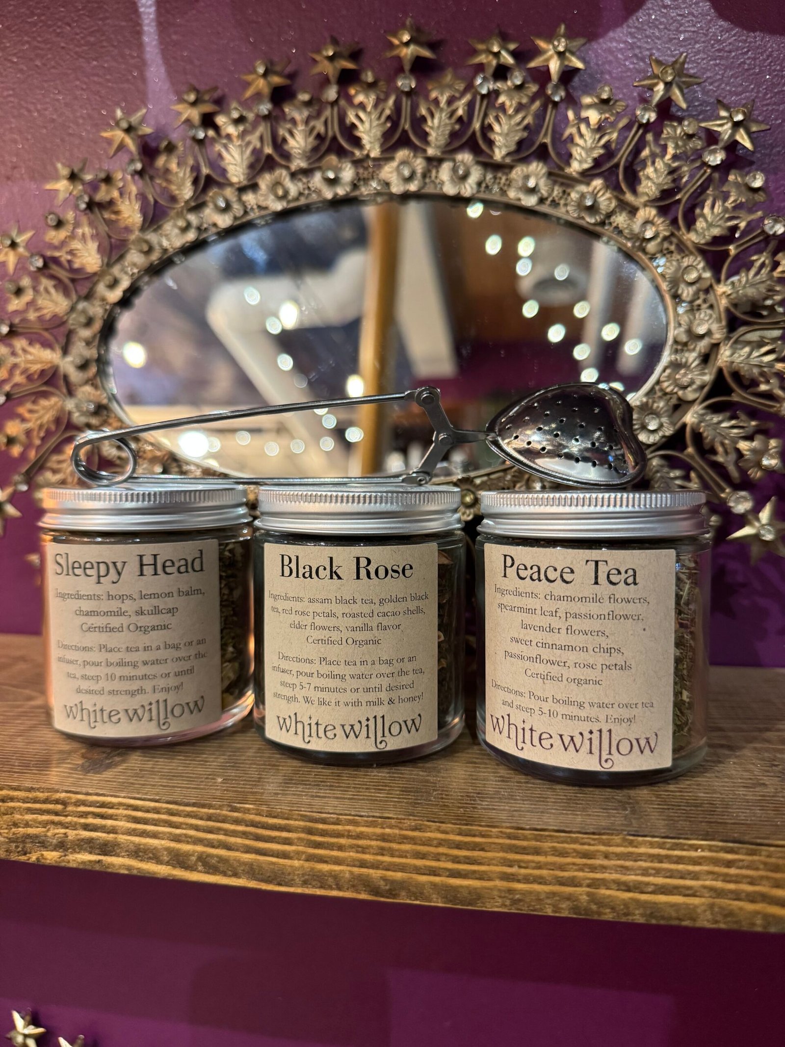 • 3 of our most popular teas – Black Rose, Sleepy Head, and Peace Tea – 2 ounces by volume